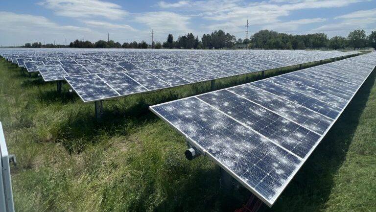 Hail severely damaged a solar farm in Scottsbluff, Nebraska on June 23, 2023. (Courtesy: GenPro Energy Solutions)
