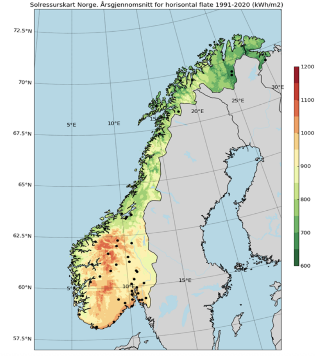 The best conditions for solar in Norway were identified in coastal areas, particularly in the outer Oslofjord and along the Sørland coast. Mountainous regions of southern Norway were also found to have high solar radiation, but were identified as unrealistic for solar installations.