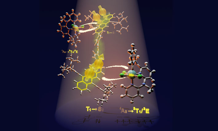The team developed a molybdenum-based spin-flip emitter that selectively captures the energy of triplet excitons before they dissipate. Its molecular design allows electron spin to flip during near-infrared (NIR) light absorption or emission, enabling more efficient harvesting of the multiple excitons generated by singlet fission.