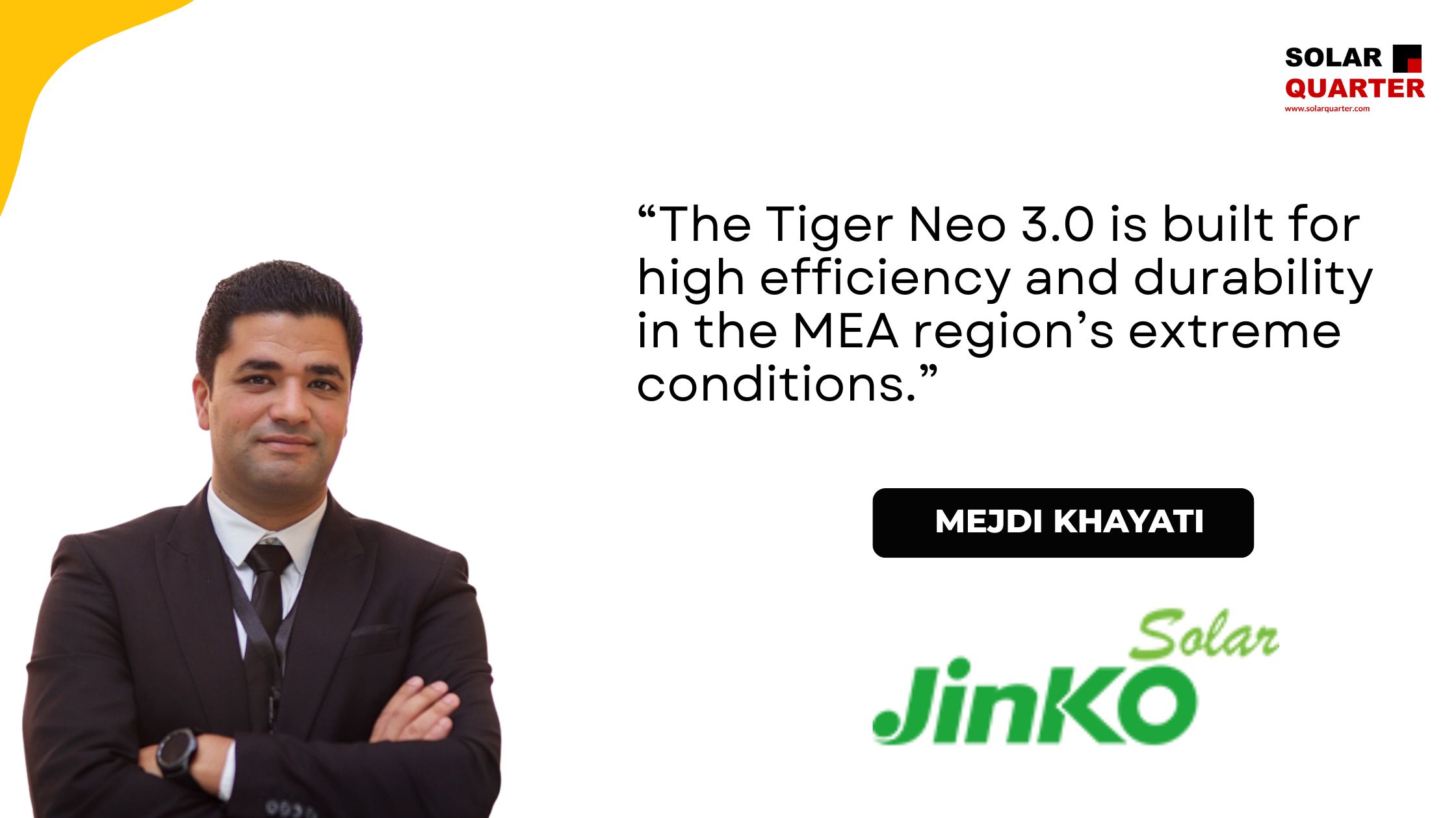 2 March, 26 Jinko Solar MiddleEast Renewable energy Solar Energy Tiger Neo Modules Pushing Performance Boundaries in Harsh Climates: Jinko Solar at Solar & Storage Egypt 2025 – Mejdi Khayati, Technical Services Manager – MEA&CA Read More