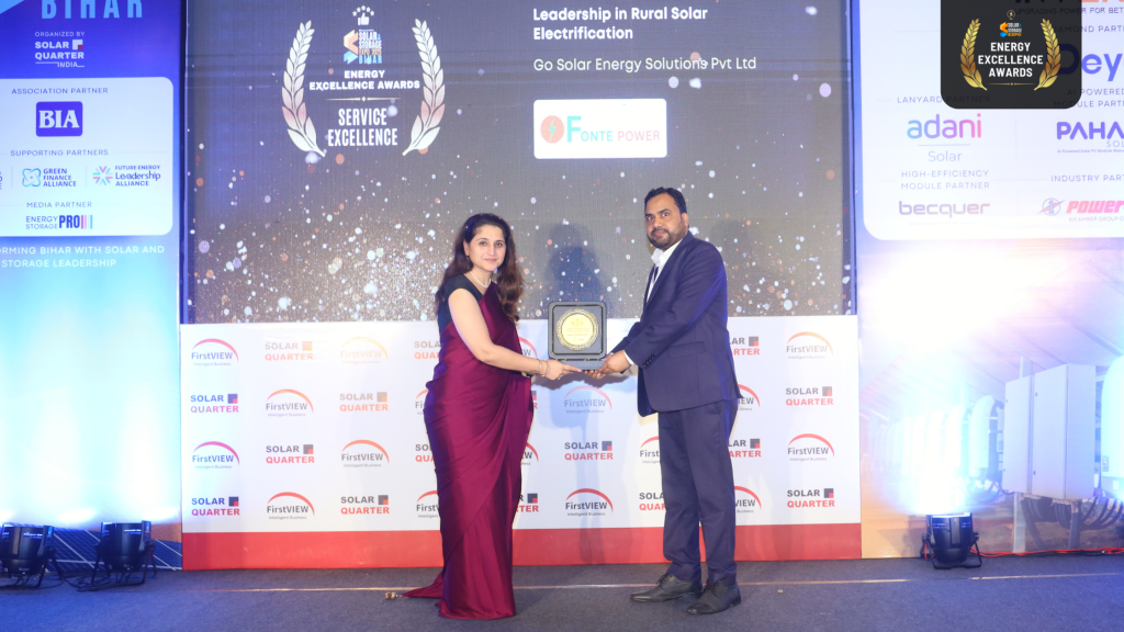 29 March, 26 Award Clean Energy Go Solar Energy Solutions India rooftopsolar Solar & Storage Expo Bihar Solar Energy Powering Rural Progress: Go Solar Energy Solutions Recognised at Solar & Storage Expo Bihar 2025 Read More