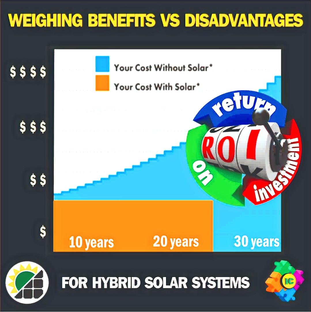 How much do the disadvantages discussed in other posts outweigh the benefits of a hybrid solar system? This article lets you learn about weighing “benefits” vs “disadvantages” for hybrid solar systems installations.
